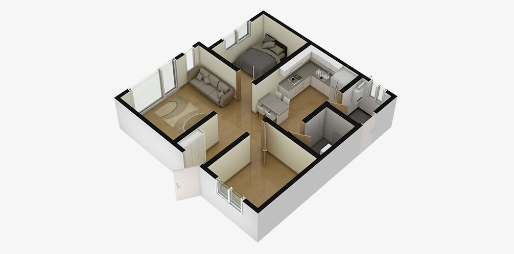 | Flat construction | Entrance, living / kitchen, bedroom2, bathroom, utility room |
