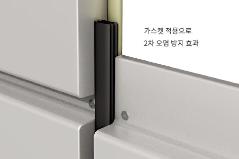 외부 강판을 딥드로잉 기술 적용으로 절단면 없이 마무리 하였으며 상하 결합 부분에 폼테이프를 부착해 누수 위험성을 방지하였습니다.